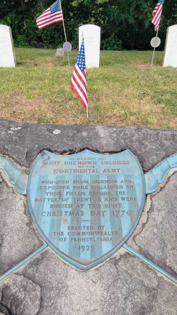 They did not die to see our country enslaved again. They died fighting tyranny. Right on the other side of that tree line where I am sitting, is the Delaware River. Near that monument, (picture below) is where they crossed on Christmas night, 1776.