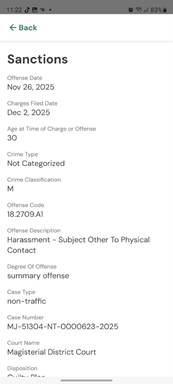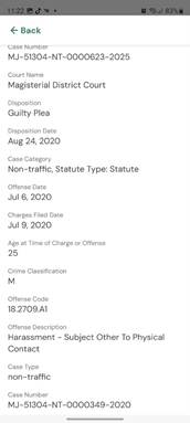 “A review of her actions reveals a consistent pattern of harassment.” Please see the following and notice my name is not on these charges of “HARASSMENT – SUBJECT OTHER TO PHYSICAL CONTACT.” I cannot add the one with Dale’s name as it contains other serious offenses including, but not limited to, operation of a business without a license. Please note the date of latest charges filed: December 02, 2025!